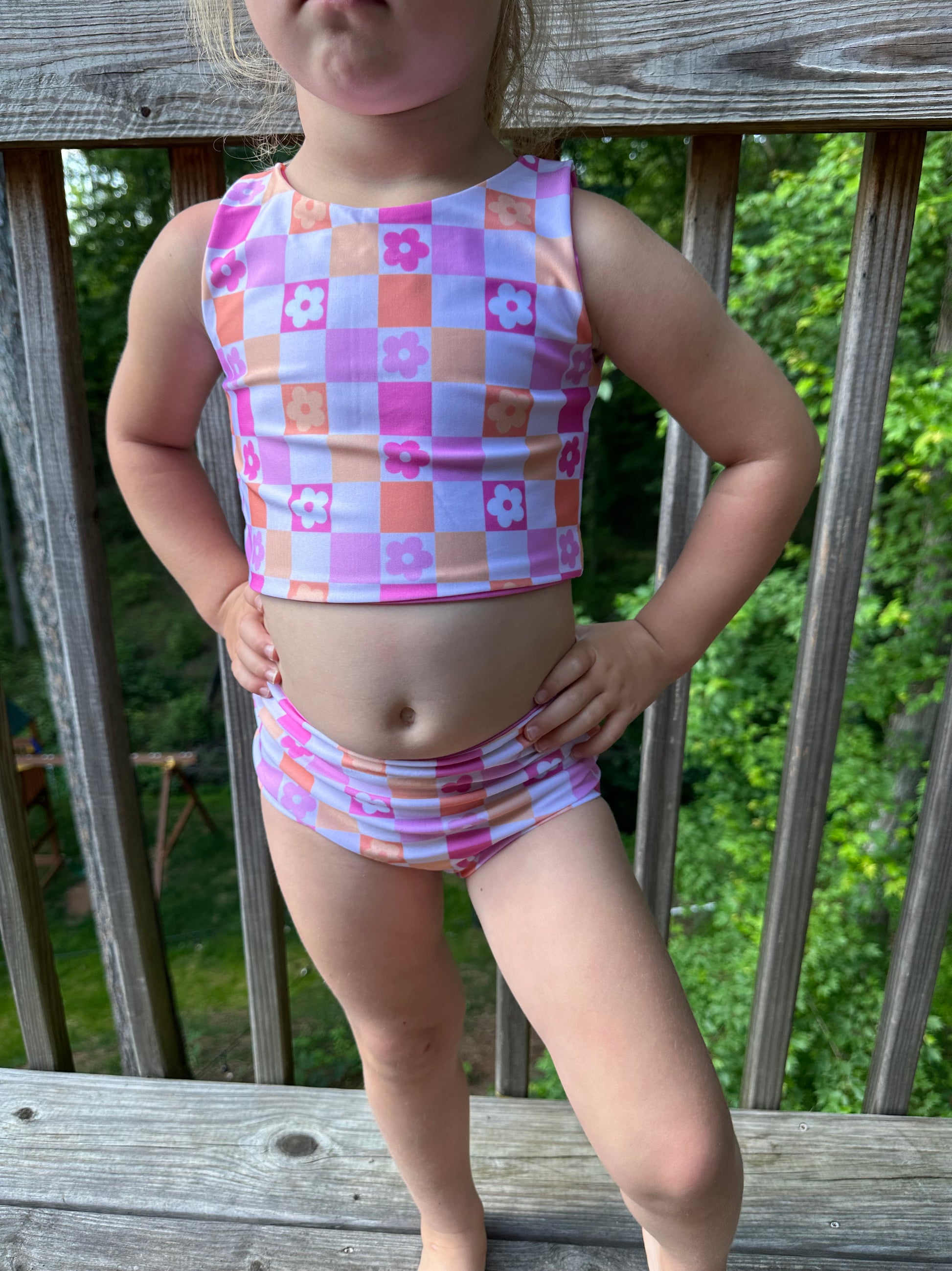 Floral Checkered Reversible Swimsuit
